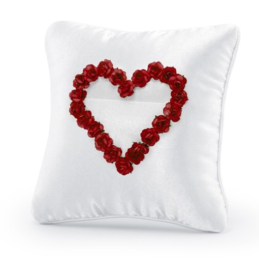 Ringkissen zur Hochzeit, weiß mit Rosenherz in Rot