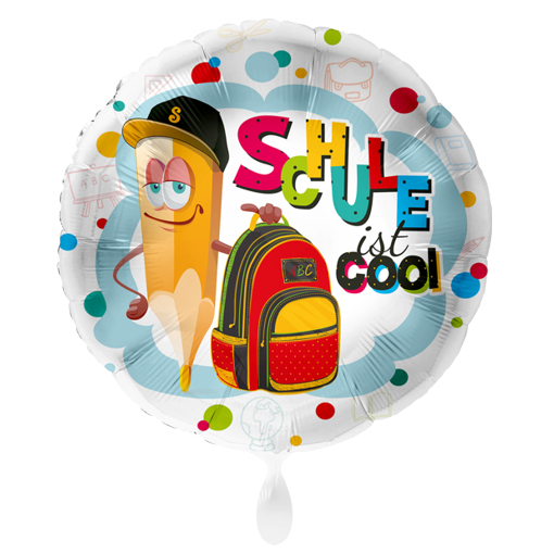 Schule ist Cool. Weißer, runder Luftballon zum Schulanfang, zur Einschulung, inklusive Helium-Ballongas
