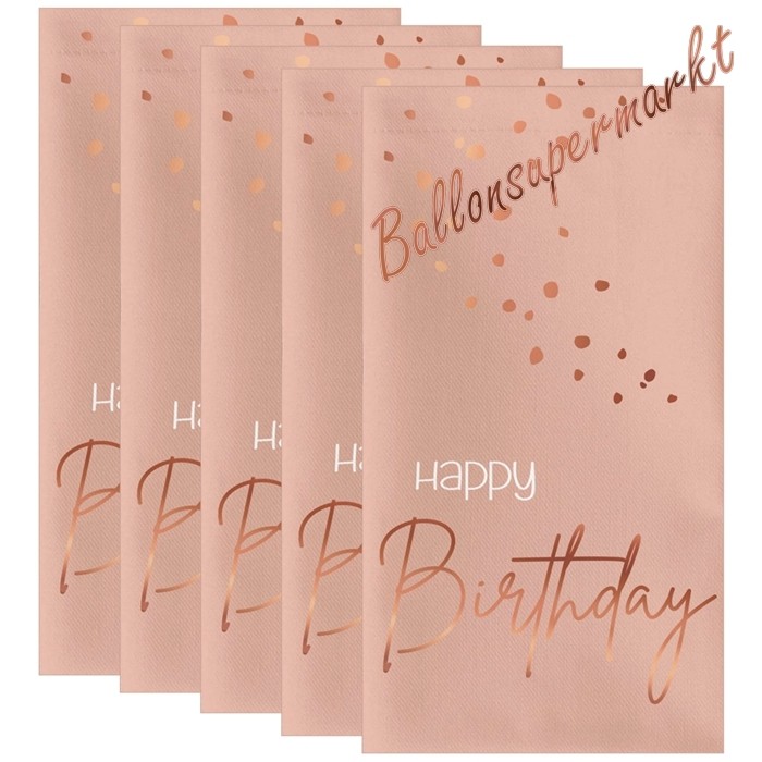 Elegante Servietten zum Geburtstag in zartem Blusch mit aufwendigem Druck in edlem Roségold Metallic und der Aufschrift: Happy Birthday.