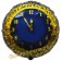 Runder Luftballon aus Folie in Schwarz mit nachtblauen Akzenten, bedruckt mit einem Zifferblatt in Gold, dass die Uhrzeit 23.55 Uhr anzeigt. Es ist also also fünf vor zwölf und höchste Zeit den Champagner einzugießen.