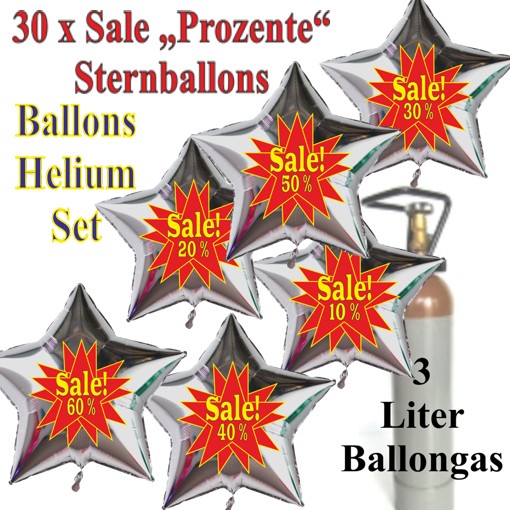 30 silberne Sternballons aus Folie "Sale! Prozente", 45 cm Durchmesser / 1A Heliumqualität!