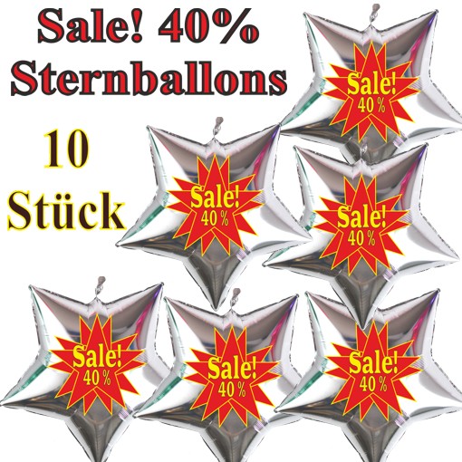 "Sale! 40 %" Silberne Sternballons aus Folie