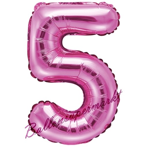 350 mm hohe Zahlendekoration, Zahl 5, Folienballon in Pink