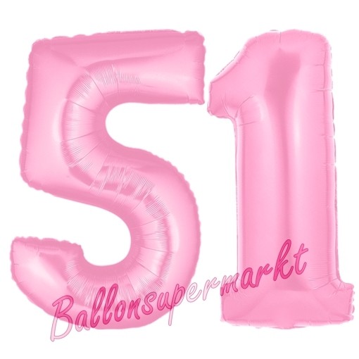 Deko-Zahlen-Luftballons Einundfünfzig in Rosa zum 51. Geburtstag