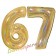Glitzernde Deko-Zahlen-Luftballons Siebenundsechzig in Gold zum 67. Geburtstag