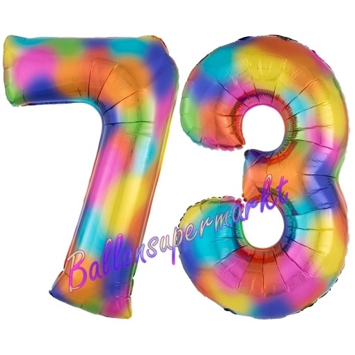 Bunte Deko-Zahlen-Luftballons Dreiundsiebzig in Regenbogenfarben zum 73. Geburtstag